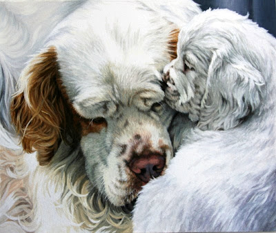 The exceptional dog artist Pippa Thew is the creator of the lovely Clumber Park (available through Sally Mitchell Fine Arts), which was completed several years ago. Now Pippa has returned to the Clumber, and this season has chosen a mum and her puppy for her subject. The artwork is executed with a remarkable empathy for motherhood and the breed and will grace many a fine wall to celebrate our breed.